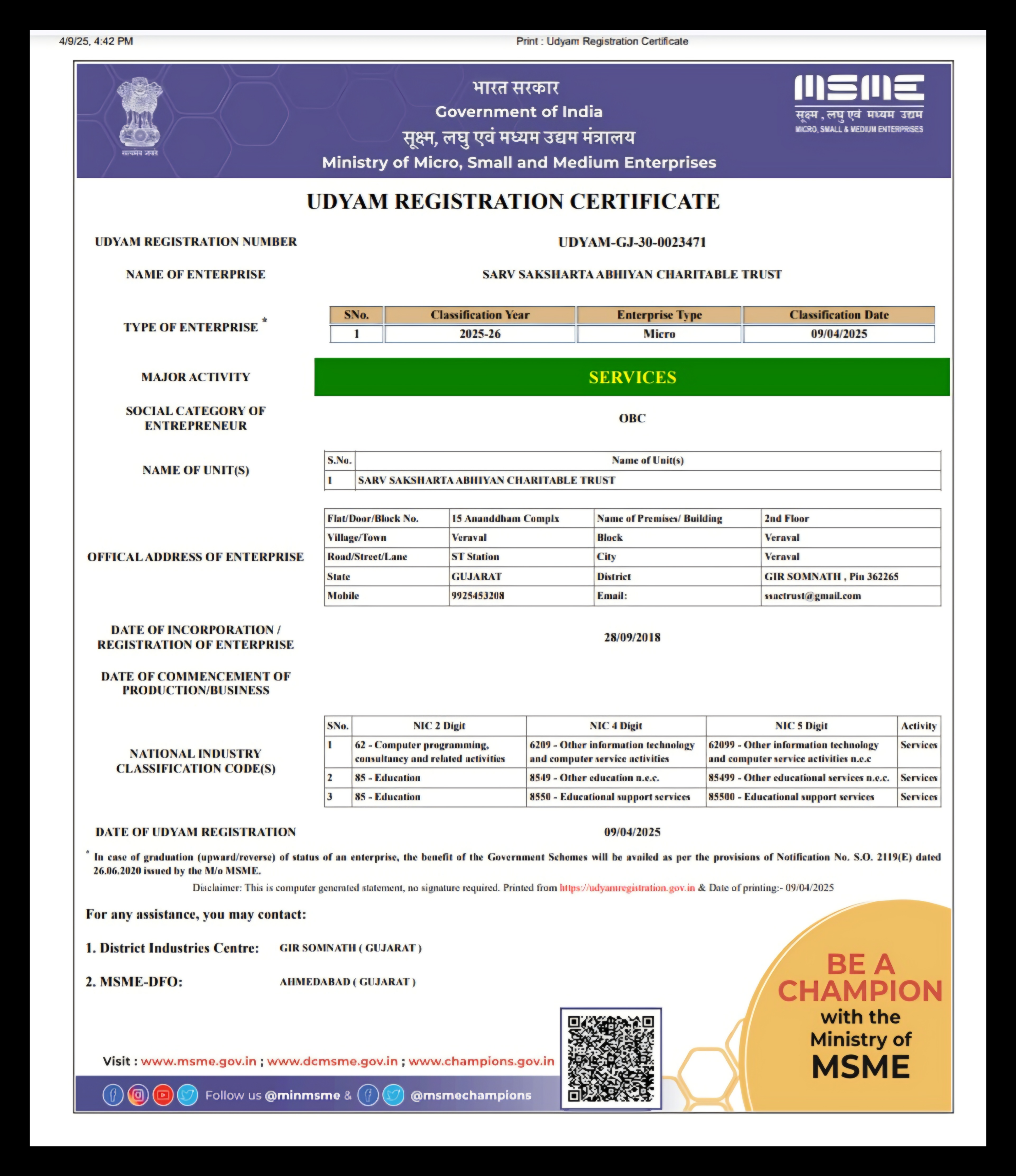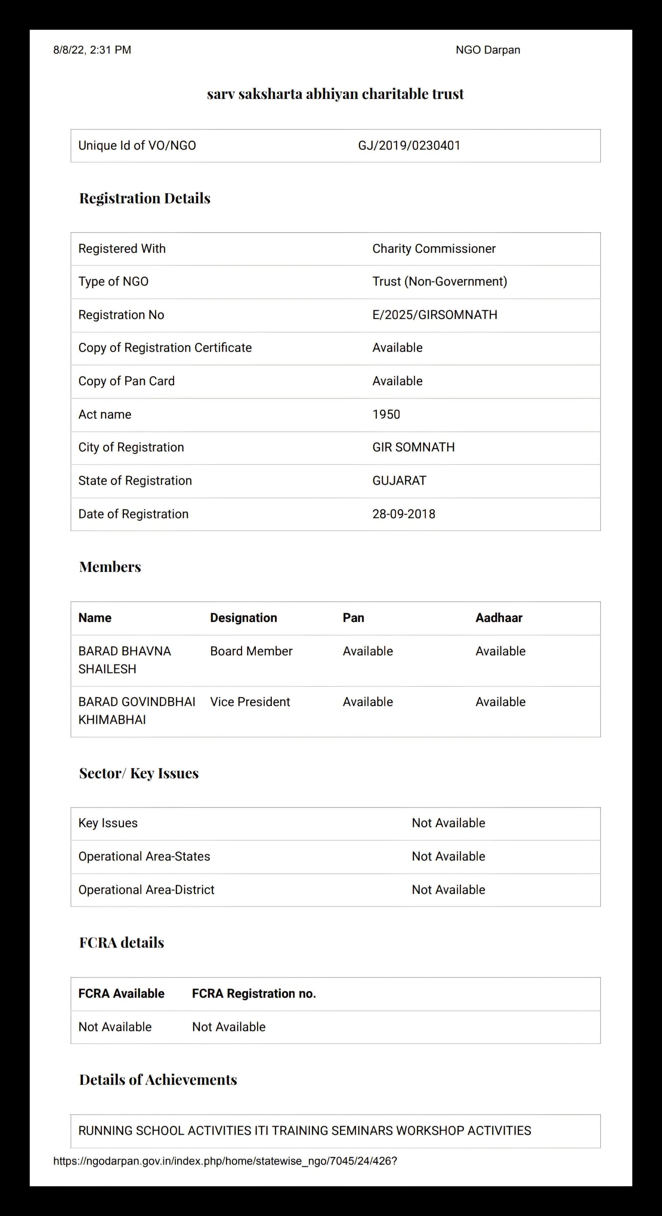 NGO Registration Sarv Shiksha Abhiyan Charitable Trust