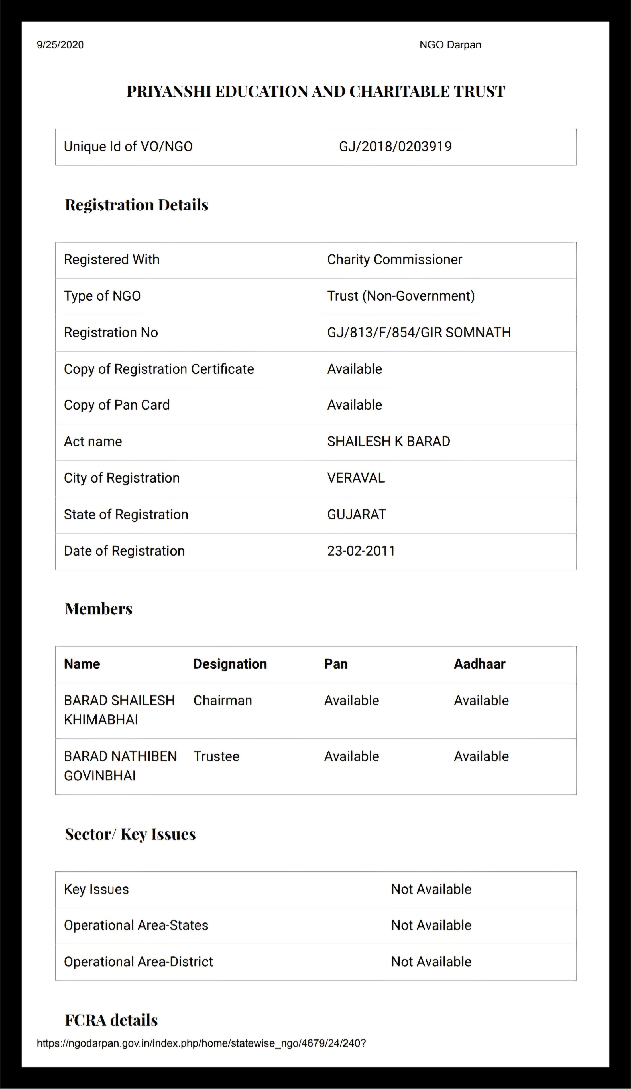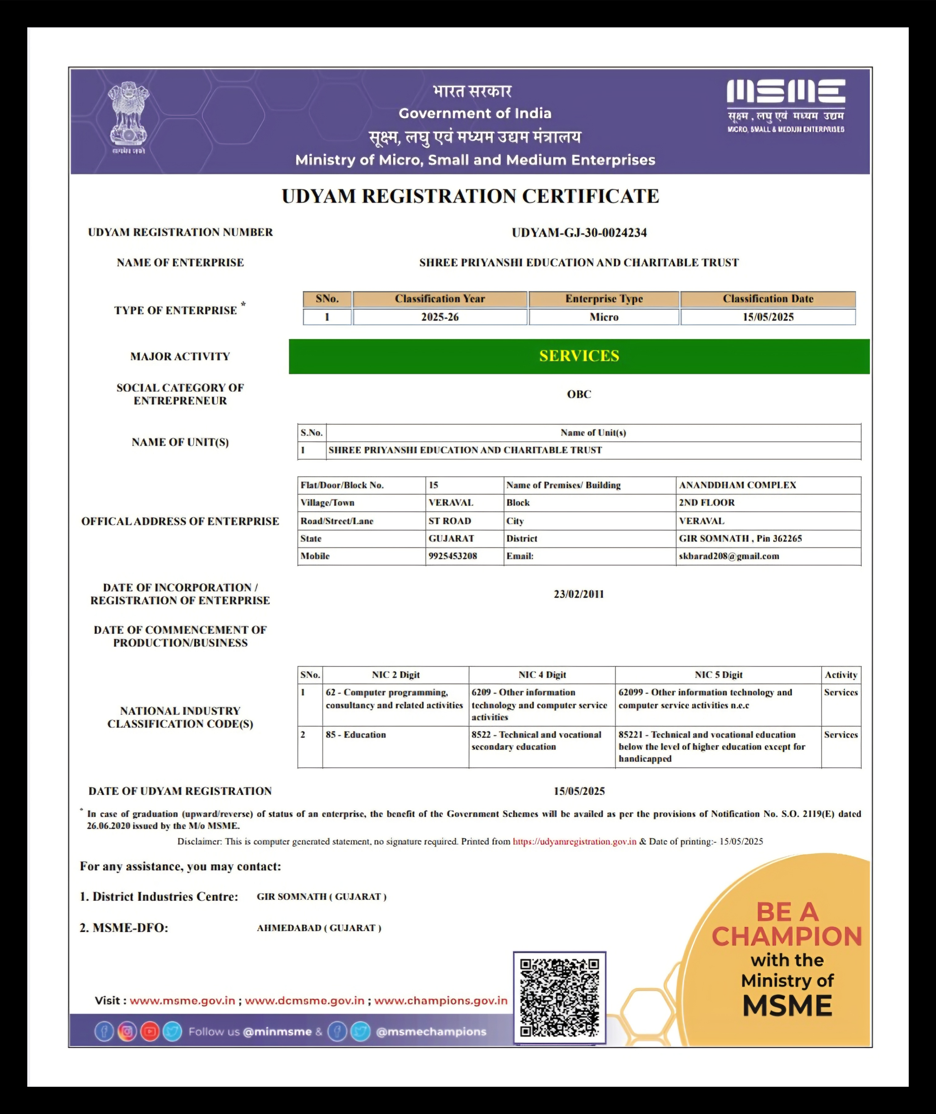 NGO Registration Priyanshi Education and cCharitable Trust